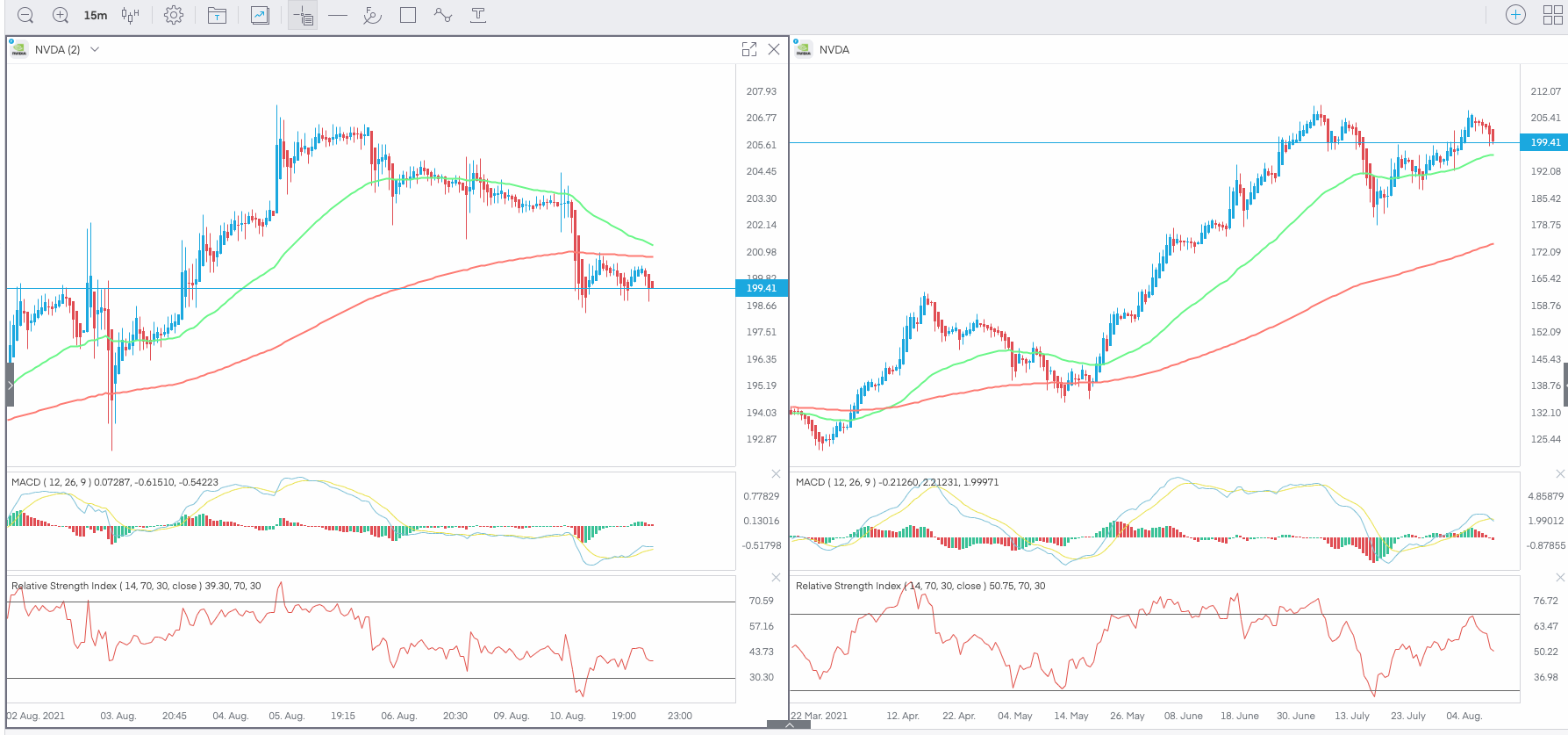 the point I am making is the ability to select from open charts and show side by side, without having to close them down. So if I have nine windows open, with my drawings etc… I can select gold for example and do a split screen