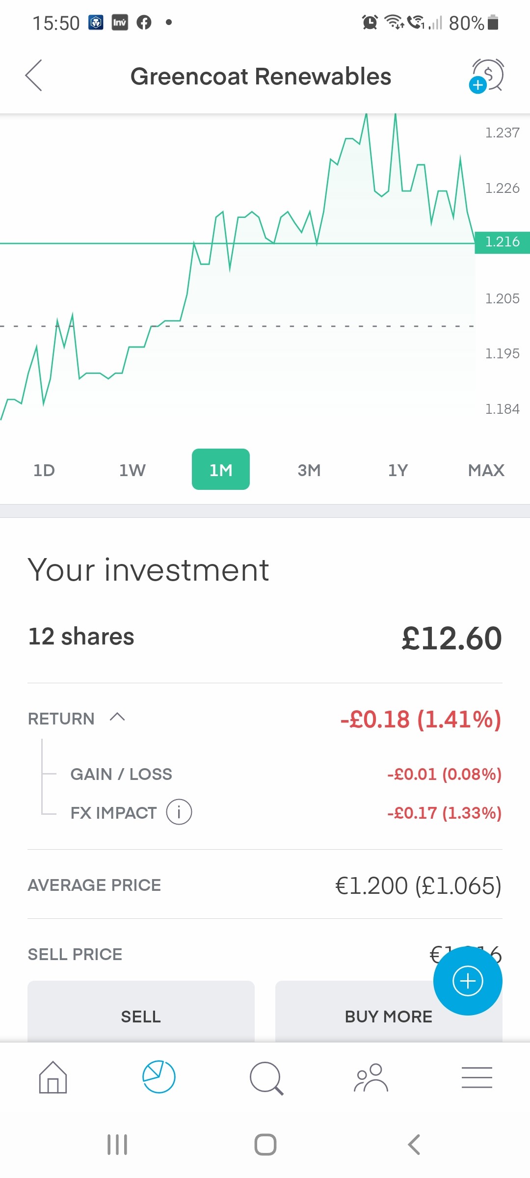 cheers red, I can see the fx impact but even the gain / loss is in negative while the market price of the stock is 1.216 while I bought the stock at 1.200 and the sell price below is 1.216 as well?